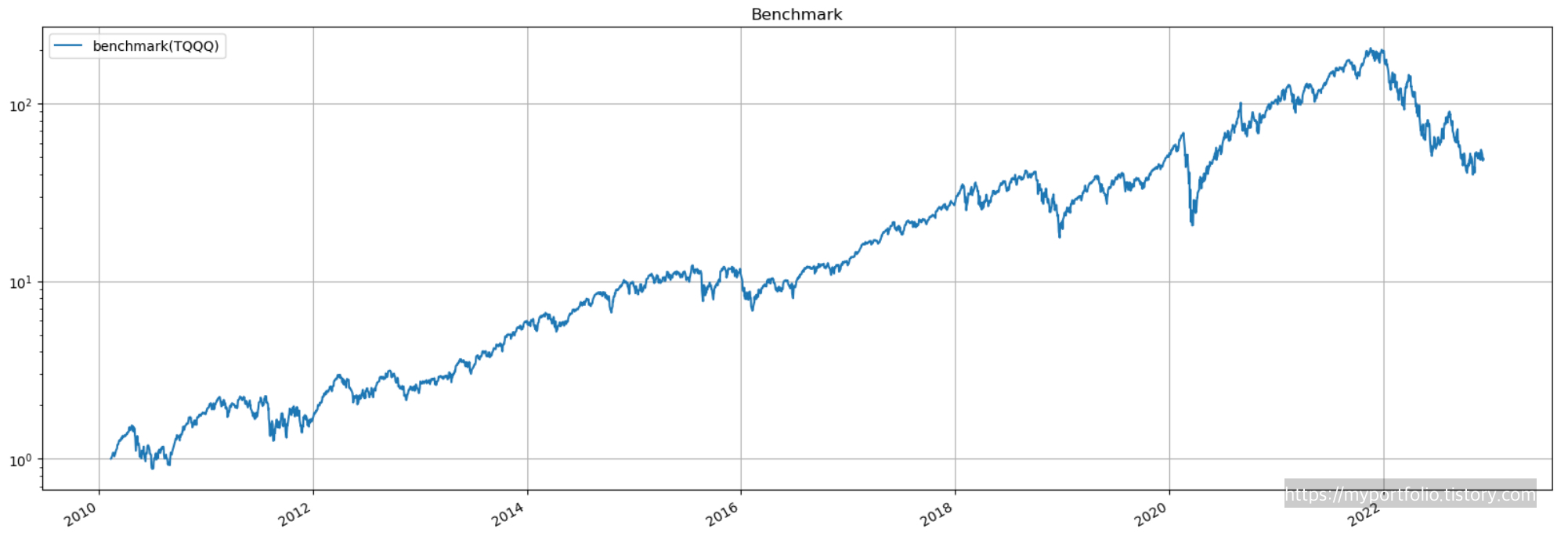 먼저 TQQQ를 단순 매입 후 보유했을 때의 수익률을 알아보자.