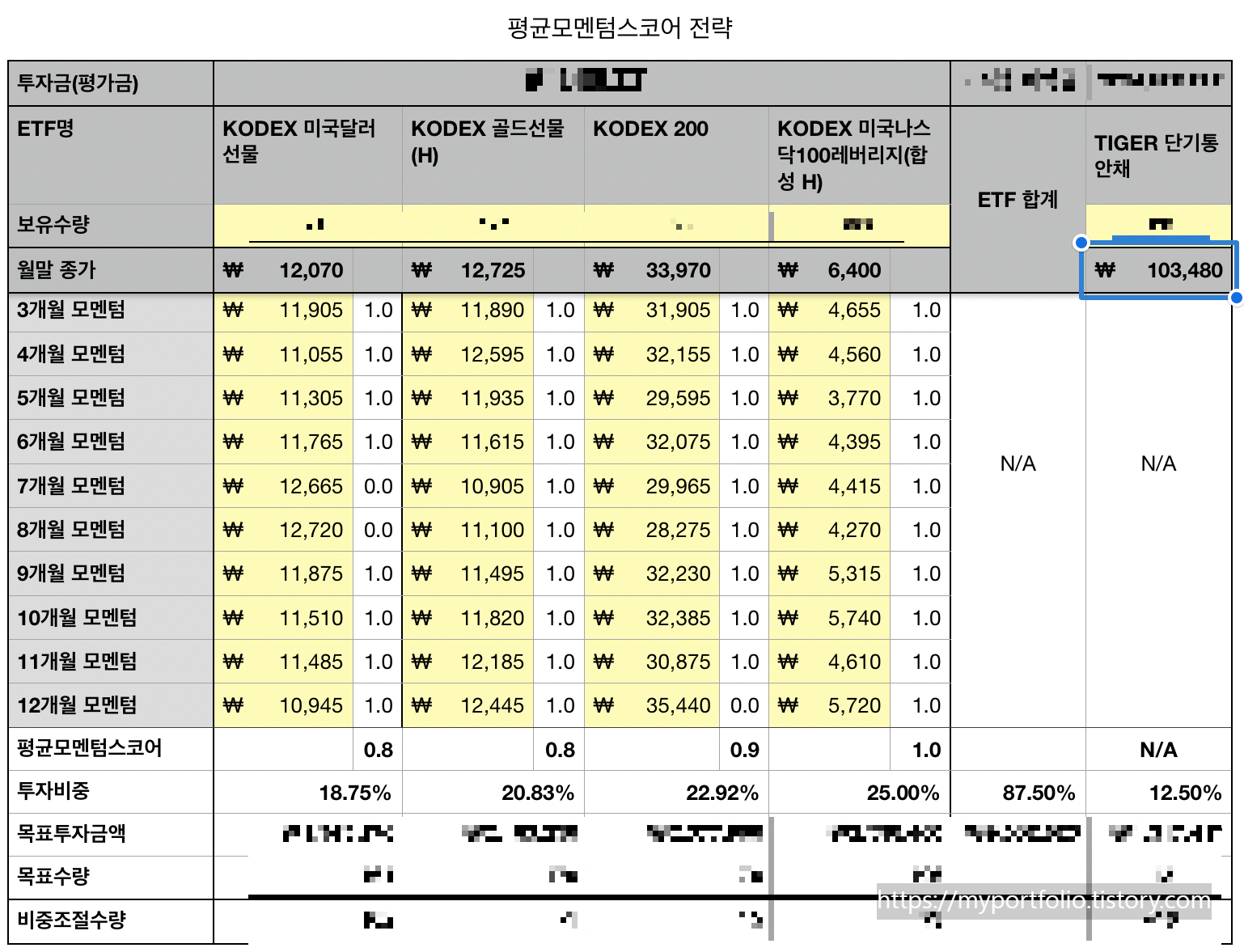 2022년 6월부터 국내 ETF 4종목을 구성해서 평균모멘텀 스코어 방식으로 자산배분 투자를 시작한 지 정확히 일년이 되는 2023년 5월까지의 누적수익률은 5.95% 로 만족할만한 성적을 얻게되었다. 투자원금이 점진적으로 증가하여 투자시작 초기보다 2배 이상으로 증가한 점을 고려하면 5.95% 라는 누적수익률 숫자보다 체감은 더 높은 듯하다.